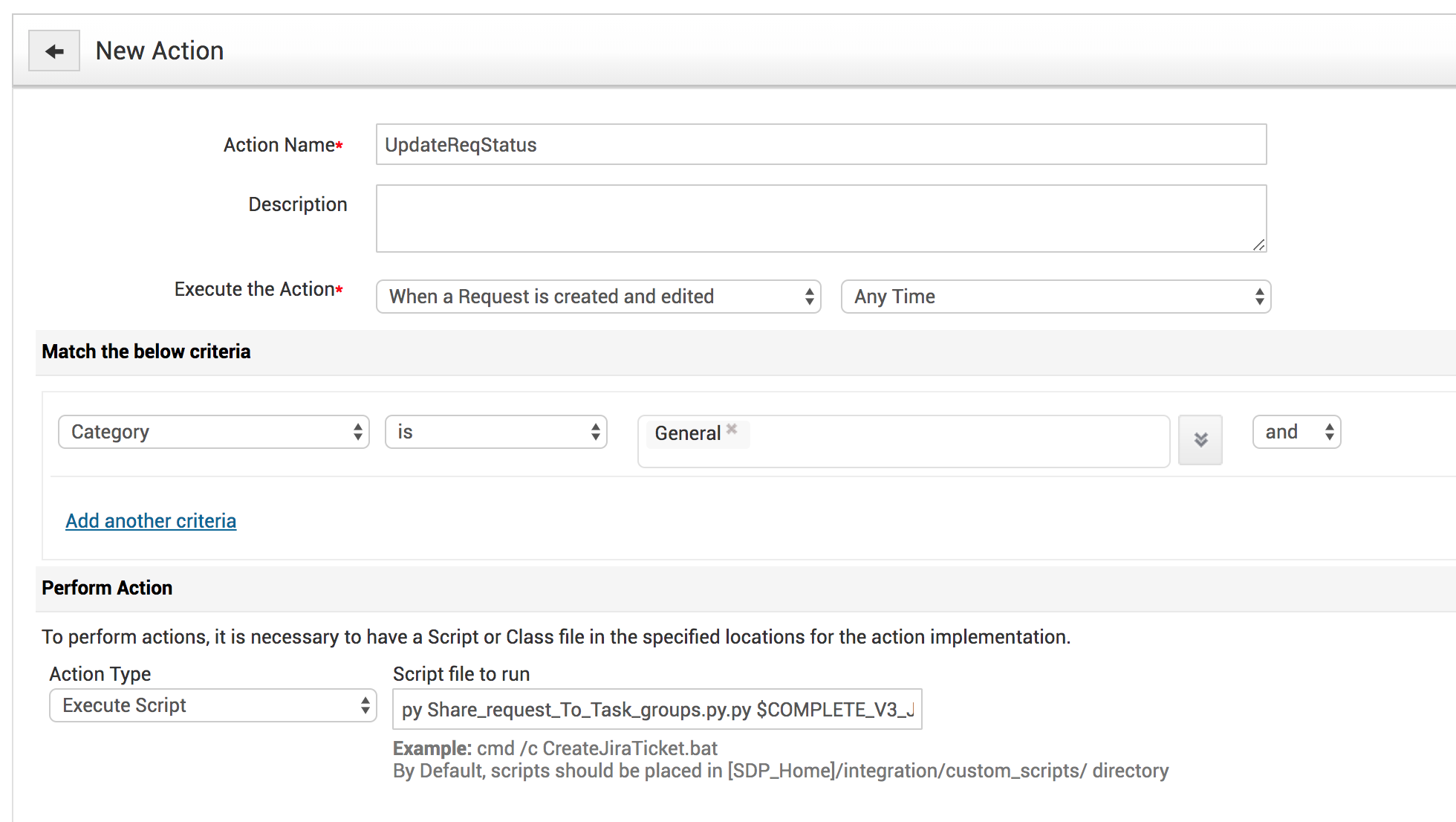 1. Download and copy the script file into the \Manageengine\ServiceDesk\integration\customscripts directory.