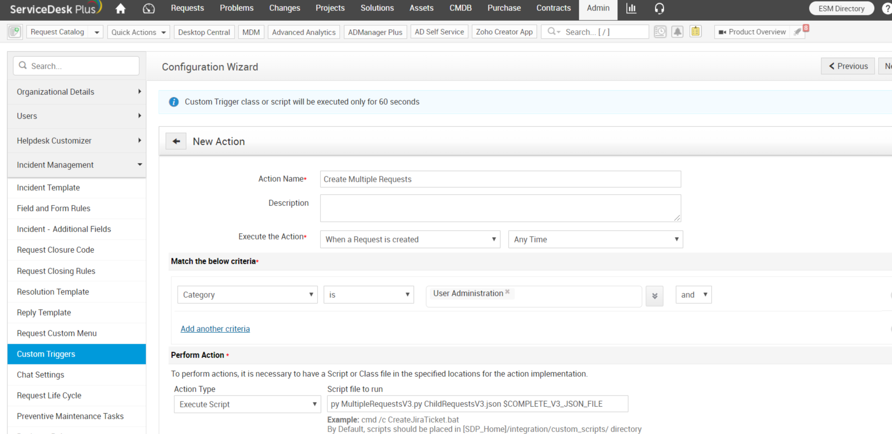 1. Make sure that the criteria configured for the parent request in the custom trigger do not match the child requests during creation. If it matches, then it will end up in a loop, where the criteria will match and requests will be created in the loop.