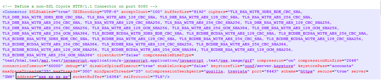 as an address parameter under the connector tag in the above-mentioned files and restart the services.