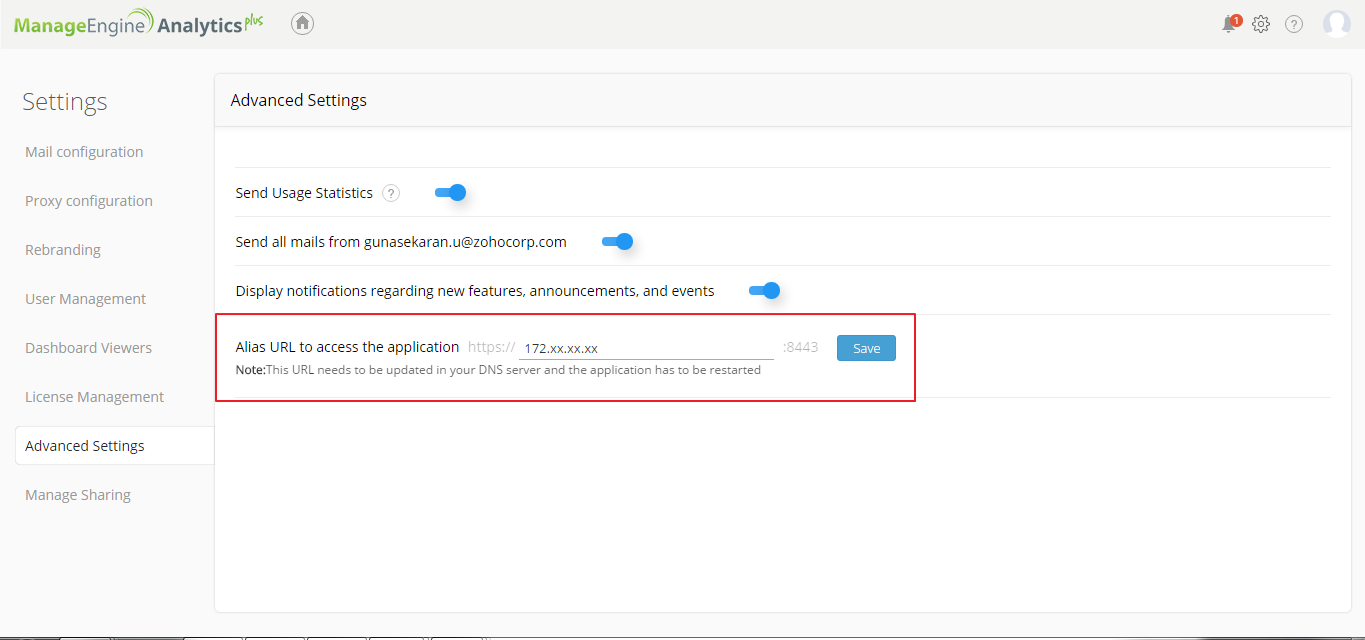Now, you would like to bind Analytics Plus to 172.23.45.67 and all you gotta do is add this IP " 172.23.45.67"