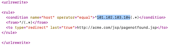 To achieve this, we used tuckey url rewrite framework to block the IP based access. The framework is already bundled in our application.Follow the below steps to block the IP based access, Assume ServiceDesk Plus server's IP address is "101.102.103.104"