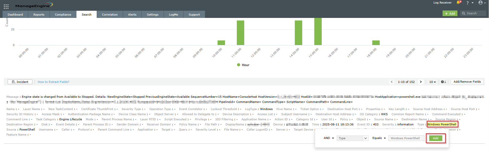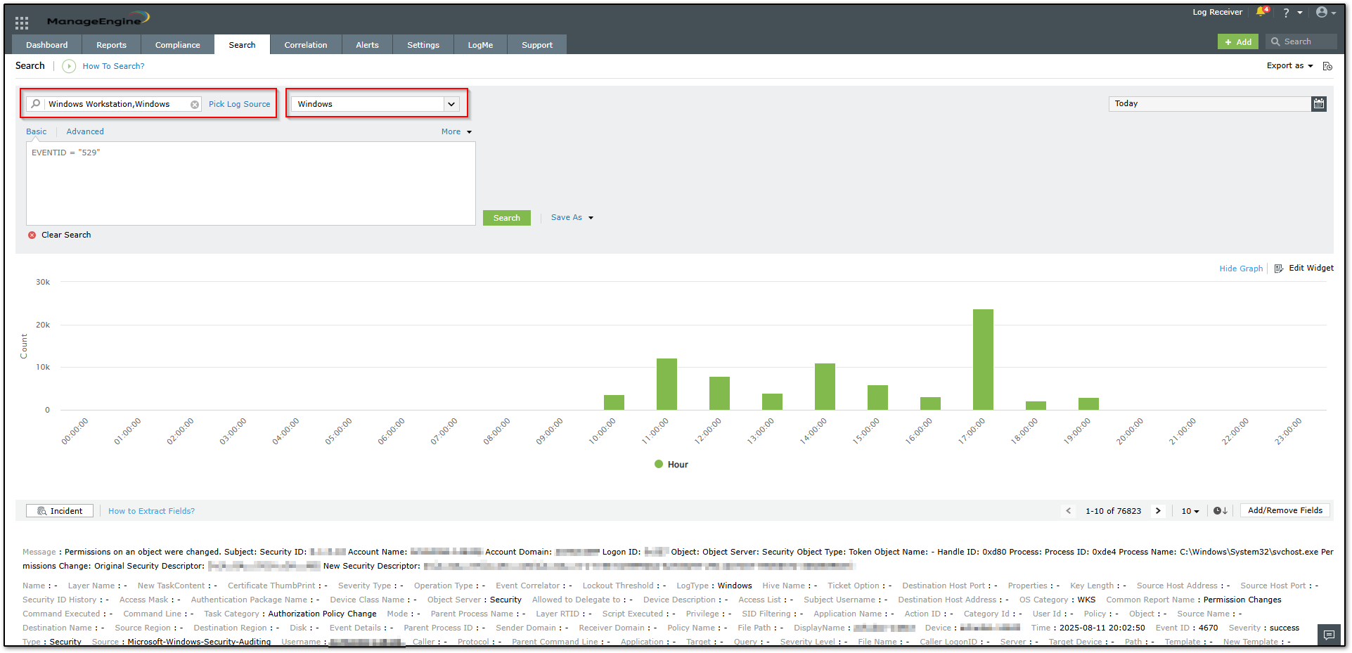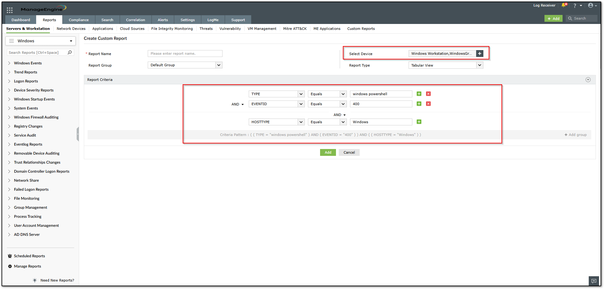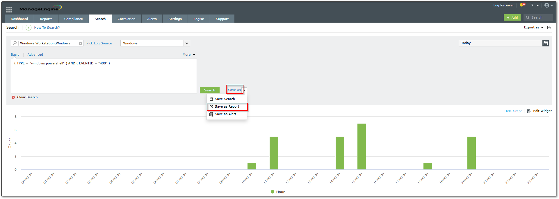 Refer How to perform Basic log search in EventLog Analyzer/How to Perform Advanced Log search in EventLog Analyzer to search for the results that you would like to get. Alternatively, you can follow the below steps to build the criteria from the Search results.