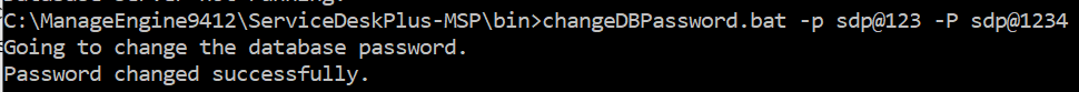 Example: changeDBPassword.bat -p sdp@123 -P sdp@1234