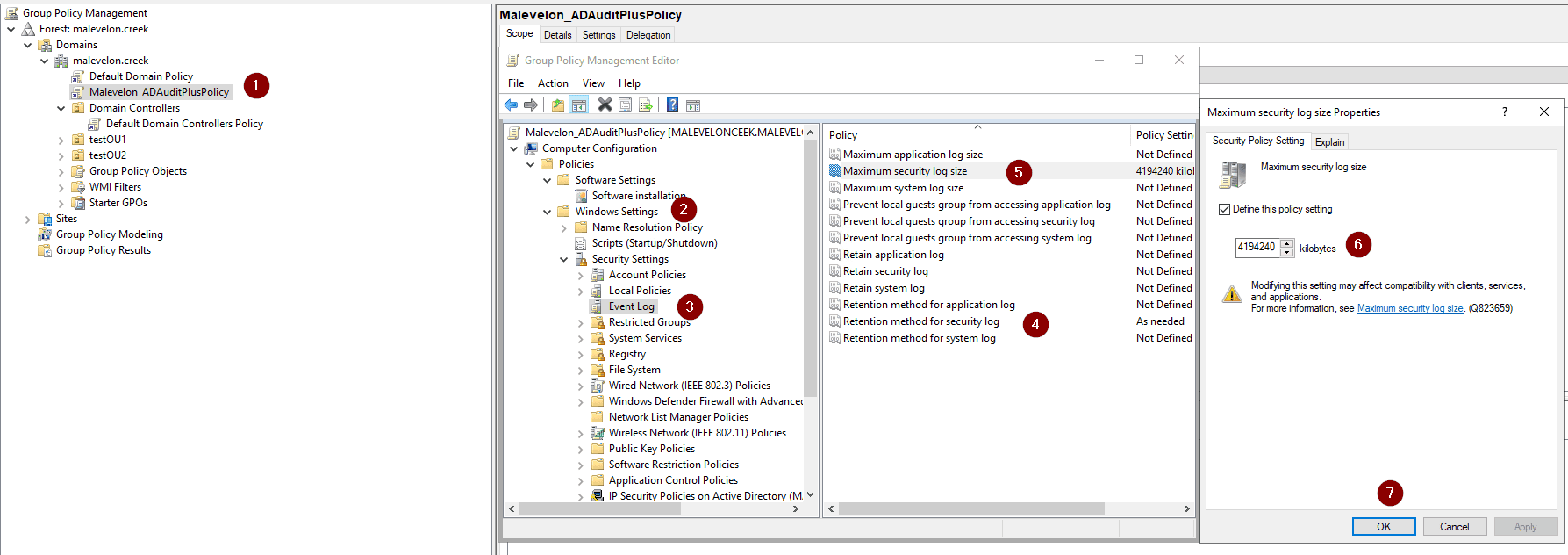 Step 2: Configure event log retention via Group Policy
