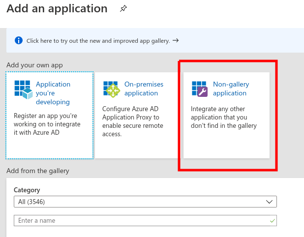 Click on the New Application Button and choose Non-gallery Application in the following screen