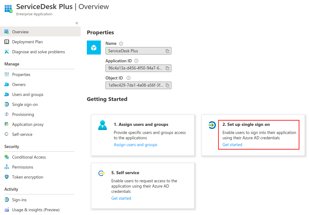 The first step in the configuration part should be done on Azure front. We will need to create an Enterprise Application called ServiceDesk/ServiceDesk Plus/any name of your choice. If the application exists already in Azure, then the same can also be used. If the application already exists, please jump to Step - 2.
