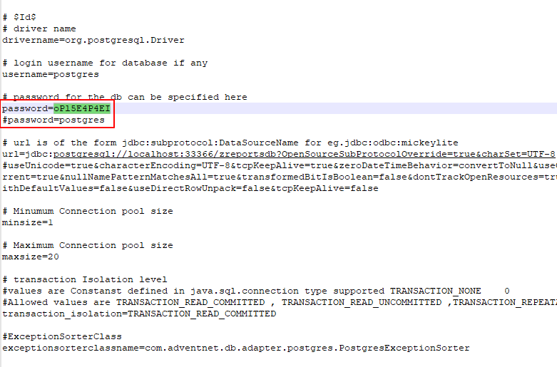 Note: You can find the password for the database in the following location <Analytics Plus home>\conf\database_params.conf