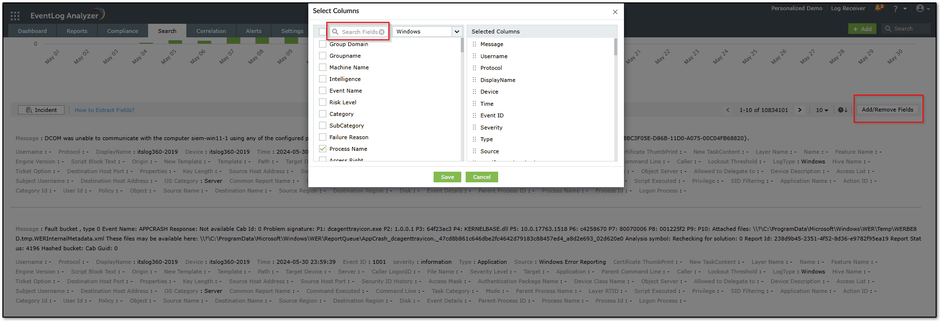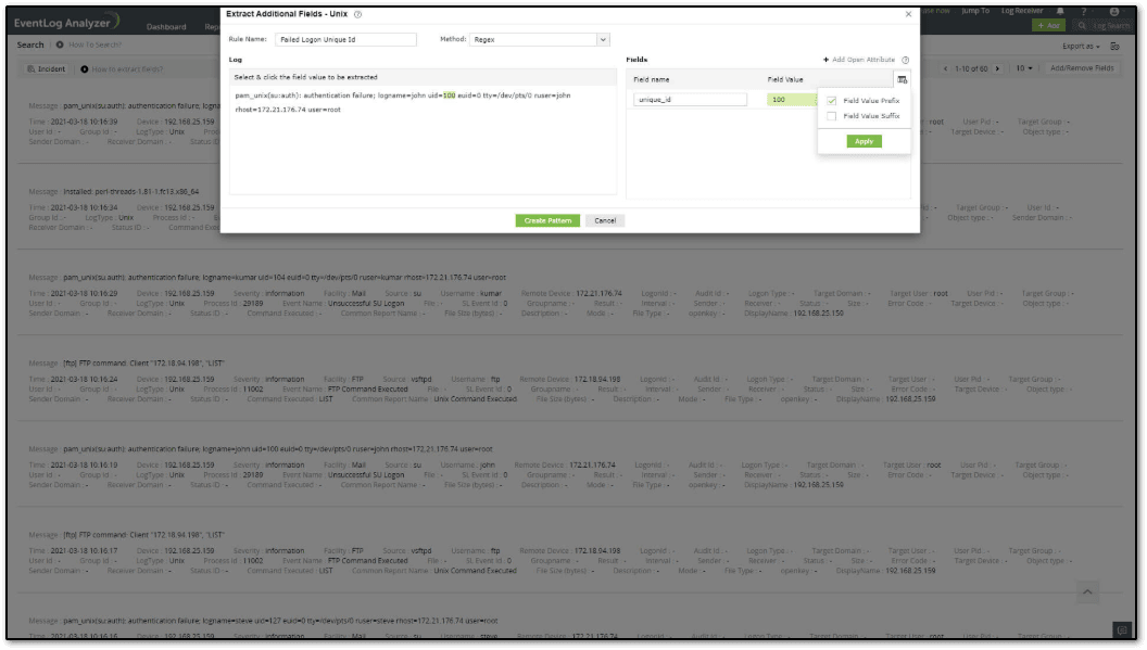 How to Extract New/Custom Fields from Log Data Using Log Search in EventLog Analyzer