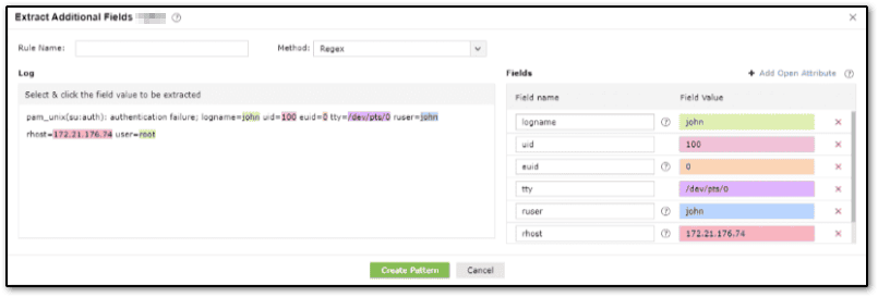 Click on Create Pattern to generate a parser rule pattern.