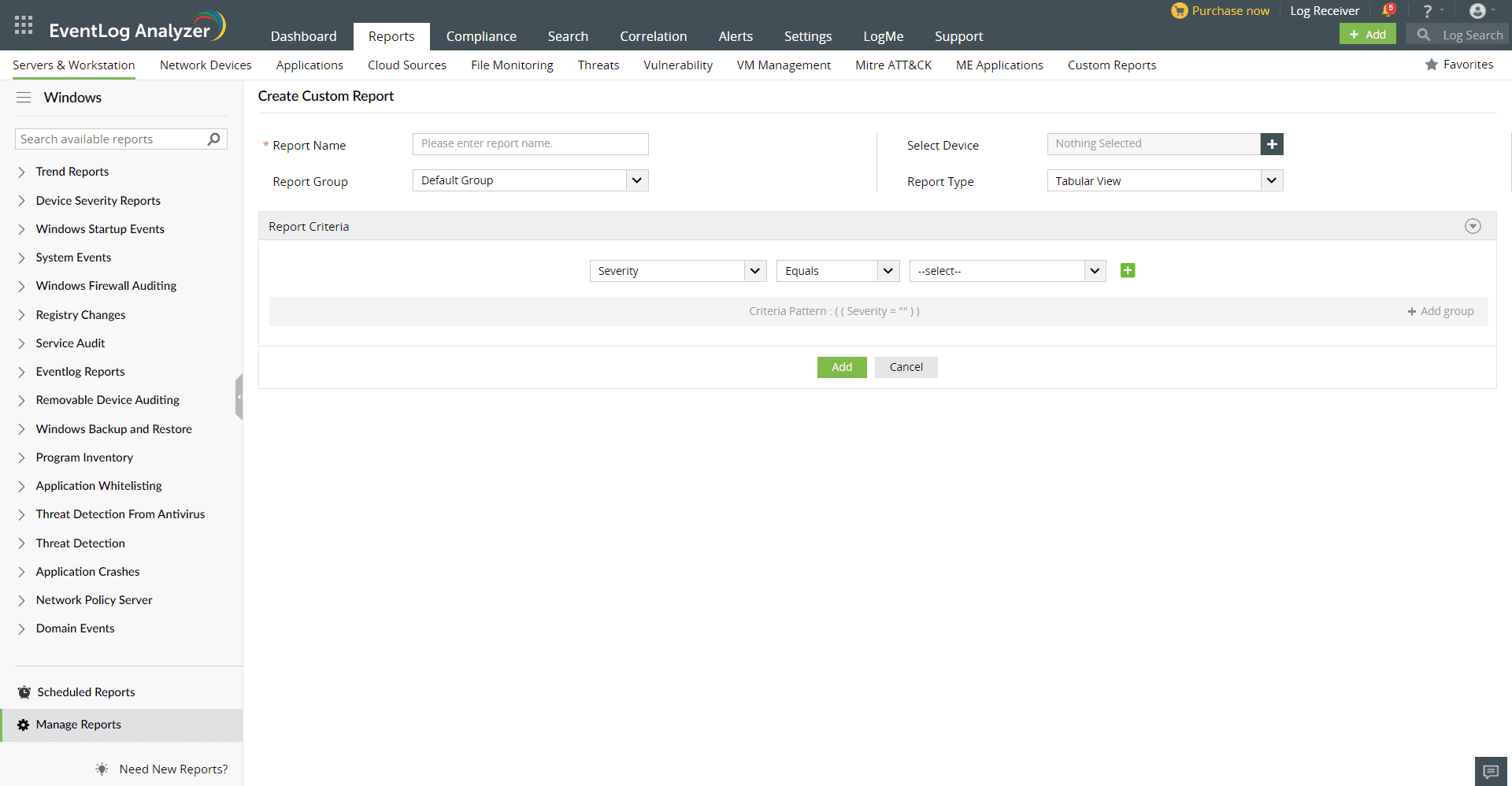 EventLog Analyzer offers predefined reports to view the data required. Reports are build based on the criteria build based on field values that match the events as per market standard. As most of the predefined reports will be helpful for the organisation's needs, however each organization/company will have their unique requirements for regular operation auditing, cybersecurity & compliance. This article offers you the steps to create custom reports in EventLog Analyzer to meet your specific requirements.