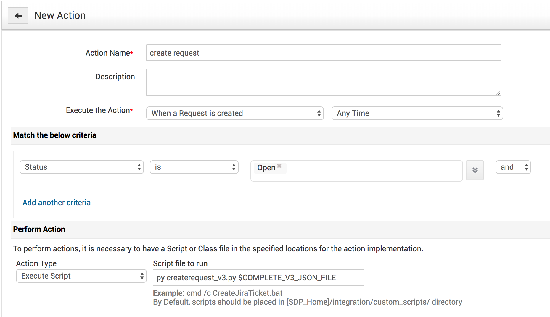 1. Download and copy the script file into the \Manageengine\ServiceDesk\integration directory.