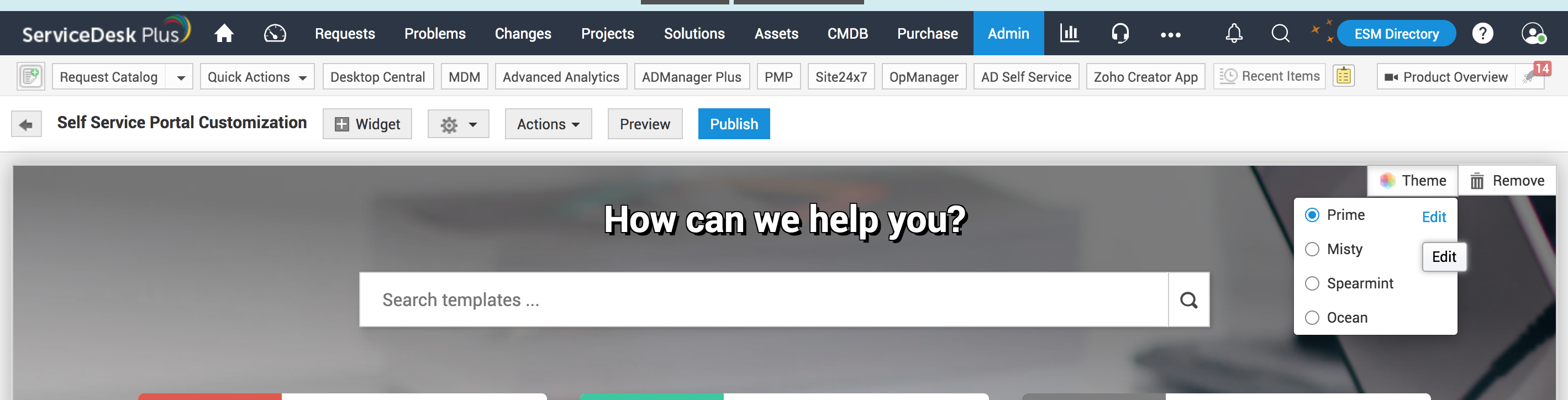 Step 2: Click on the button Customize Self-Service Portal from Admin tab -> General Settings -> Self-Service Portal Settings.