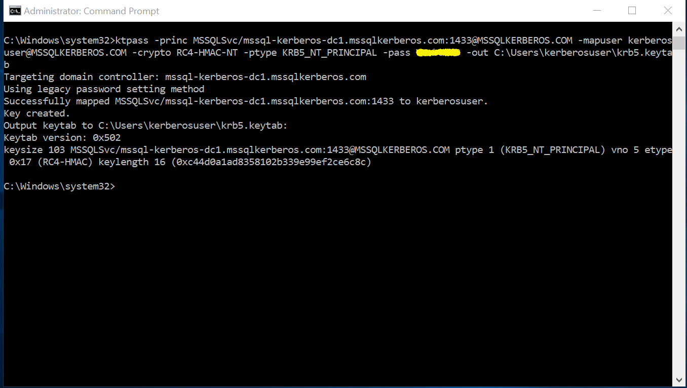 principal="MSSQLSvc/mssql-kerberos-dc1.mssqlkerberos.com:1433@MSSQLKERBEROS.COM"