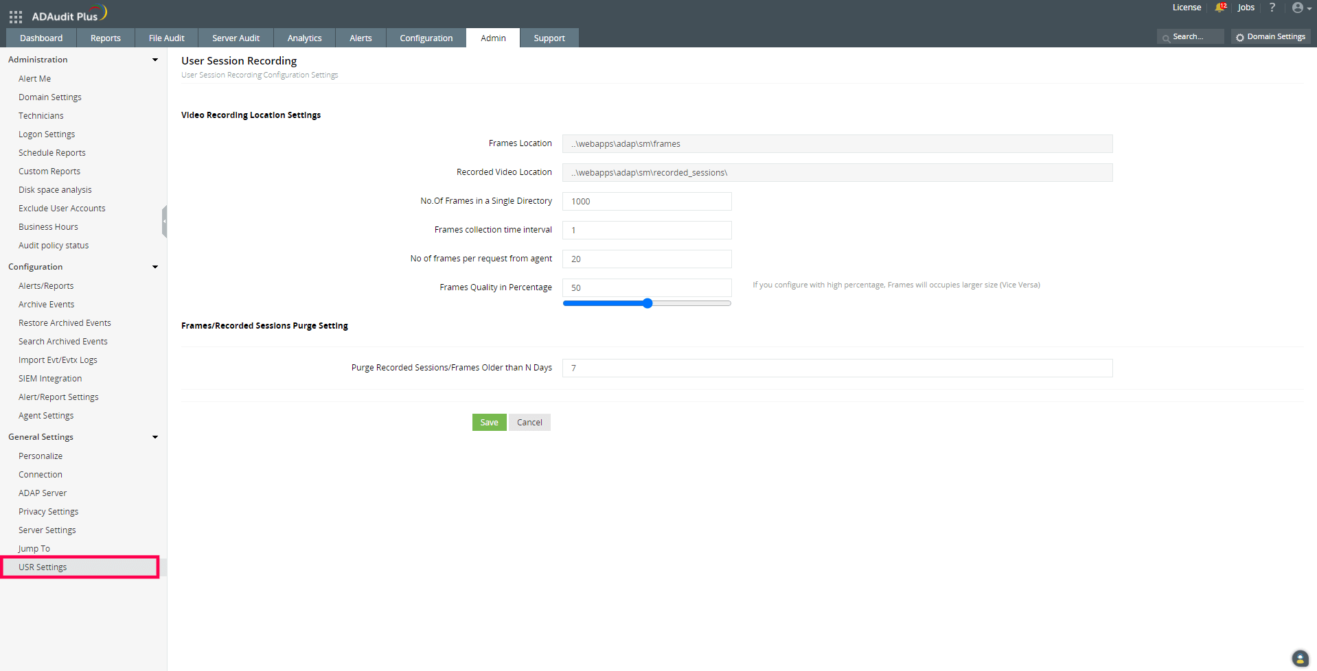 Sufficient disk space should be available on the ADAudit Plus server for storing video recordings.