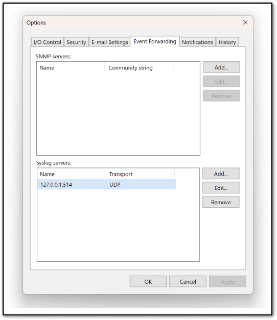 For more details, refer to the official guide on Syslog integration in Veeam Backup & Replication. Once the log packet reached the application, the log collection will start automatically and you will be able to see the events in Reports, Search tab etc.