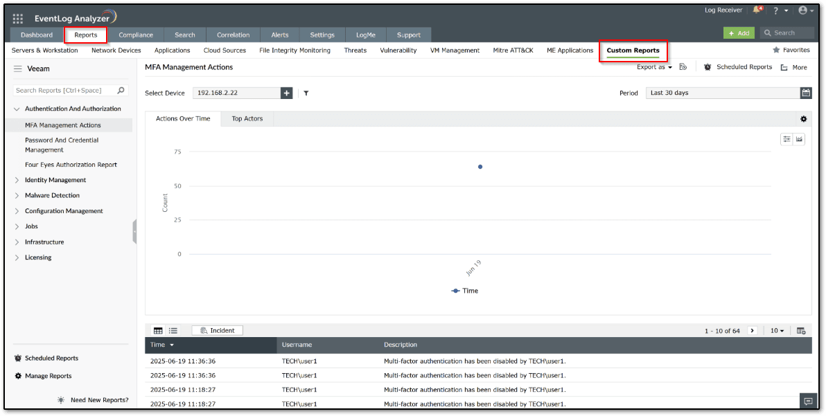 EventLog Analyzer/Log360 offers the following auditing capabilities while auditing Veeam.