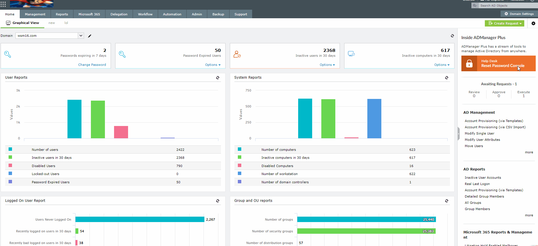 Log in to ADManager Plus with the built-in administrator account.