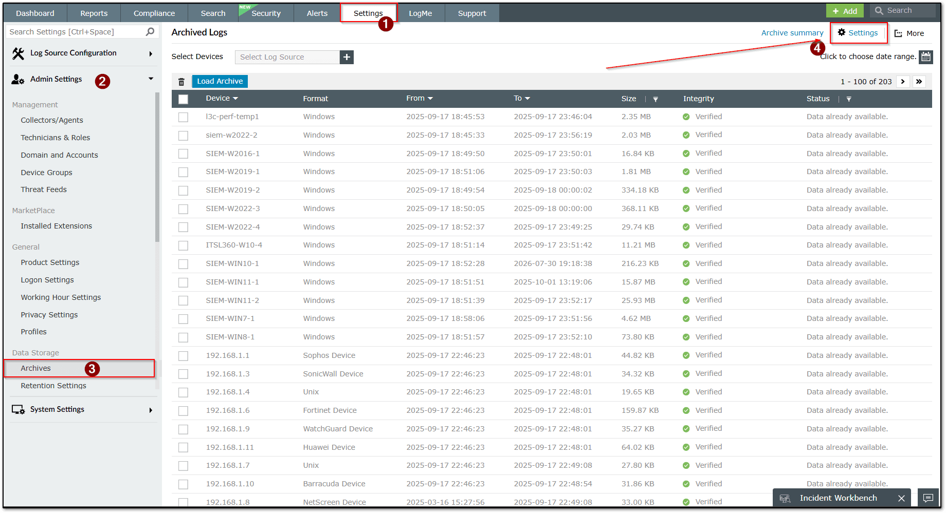 2. Navigate to Settings >> Admin Setting >> Archive. Click Settings in Top Right corner.