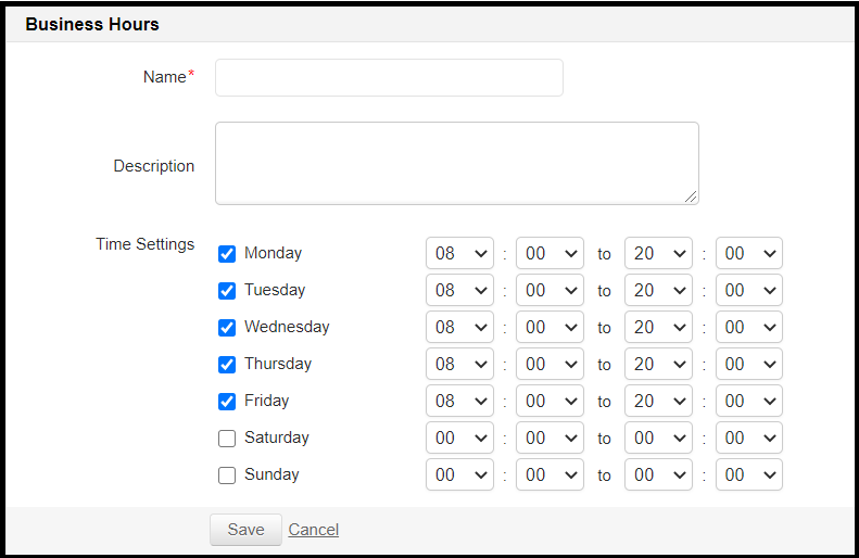Pre-configured business hours can be tagged from the drop-down menu or new business hours can be added by clicking the link available.