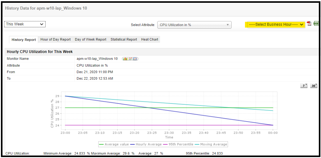 Business hours is a pre-determined set of hours which helps you to view reports for specific hours during the day. Instead of viewing data for the entire 24 hour period, you can now view reports for the particular business hours you have set. It helps you identify the critical issues which may have arisen during business hours for a particular application or resource.