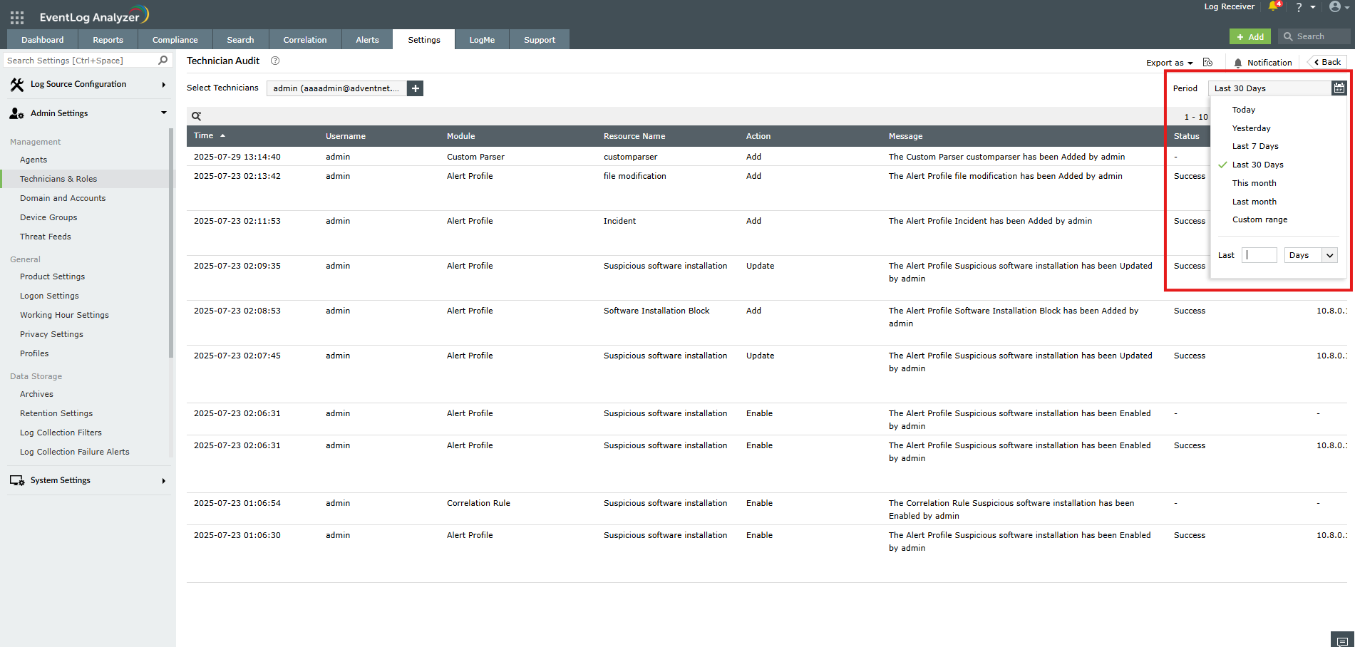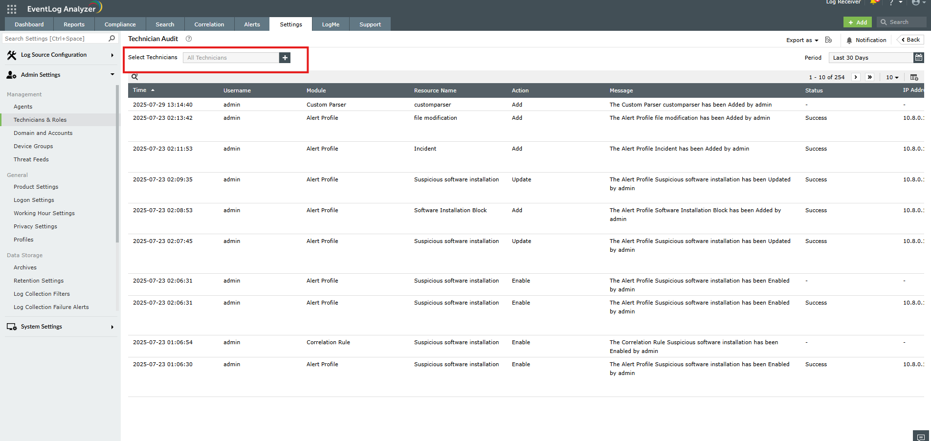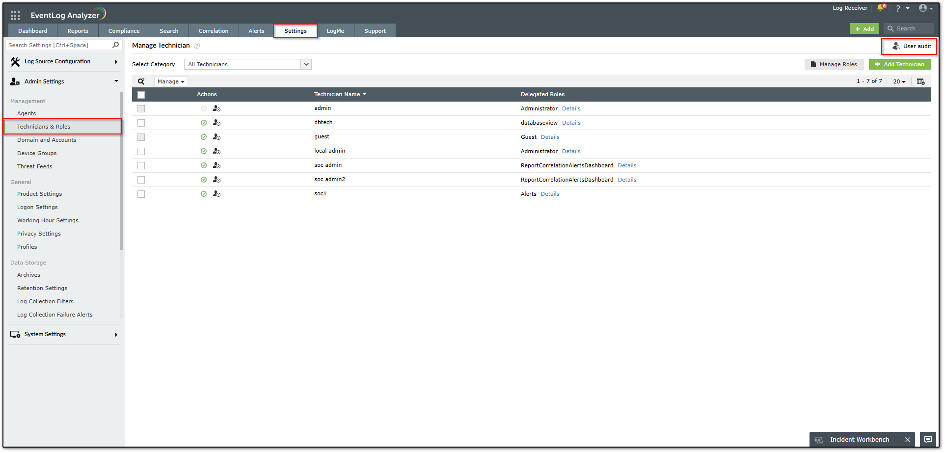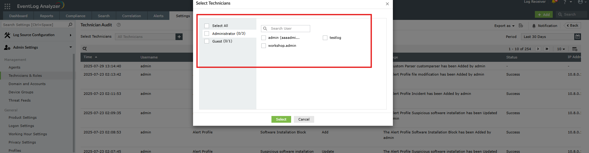 How to track the activities performed by technician (user audit) in EventLog Analyzer