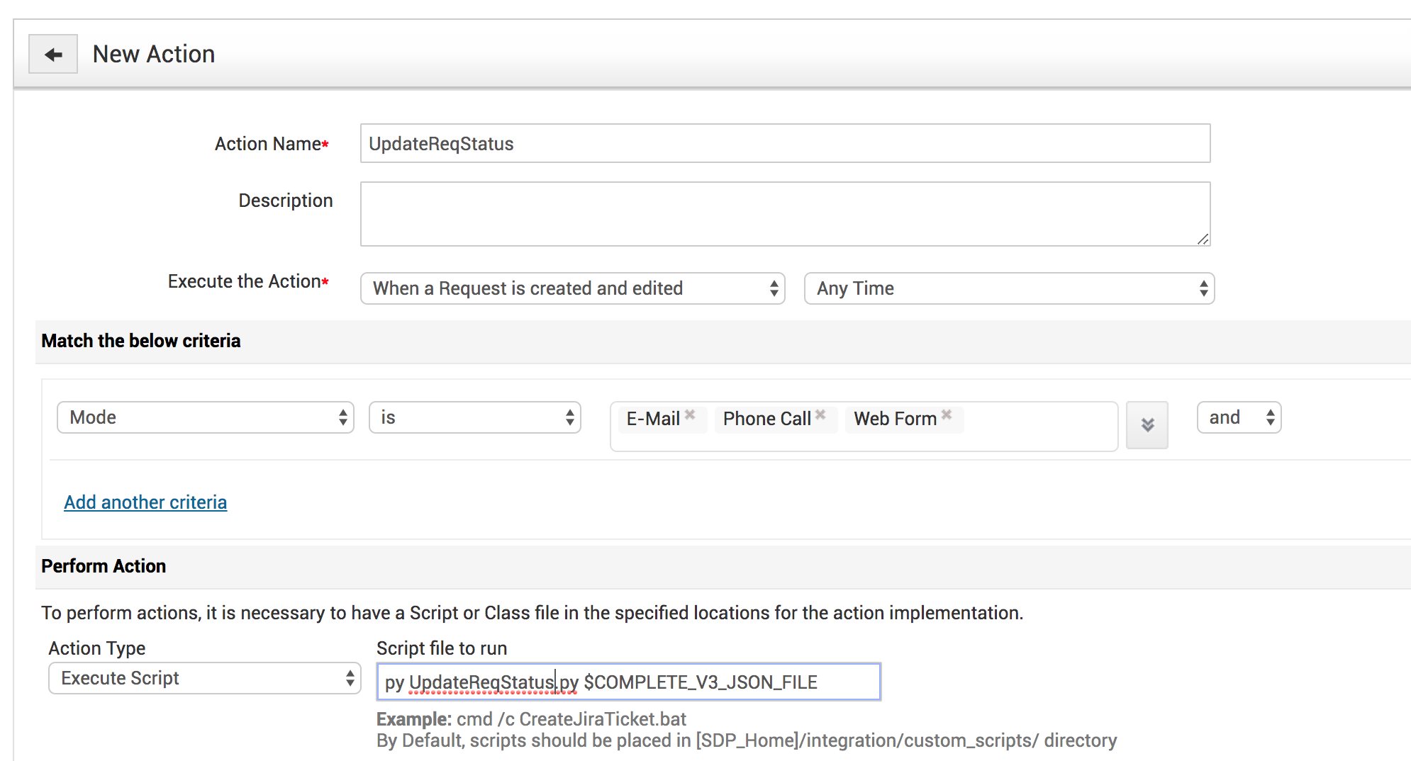 1. Download and copy the script file into the \Manageengine\ServiceDesk\integration\customscripts directory.