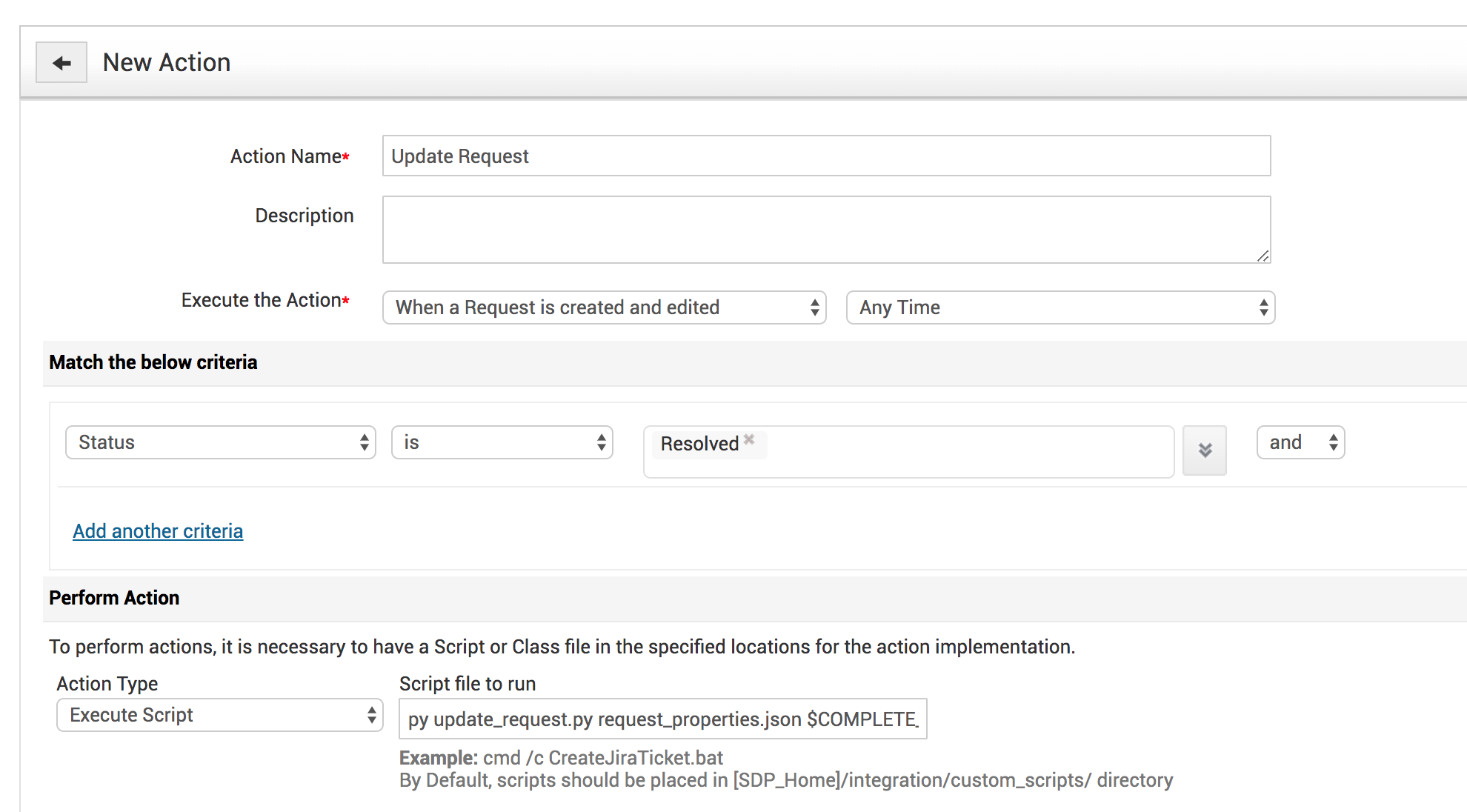 For example, If you need to add a resolution automatically as soon as the technician changes the status of the request as 'resolved', we can update the resolution content in the JSON file. When the technician changes the status to resolved, this script invokes and the resolution is added based on the value given in the request_properties.json file.