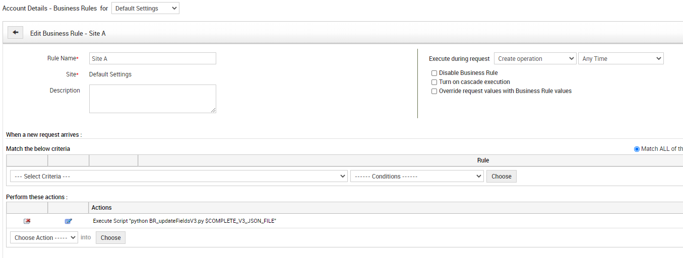 This is a sample python script to update the Request Additional Field Values during request create/update based on certain criteria using Business Rules Execution Steps: 1. Download the attached zip 2. Move the files to ...