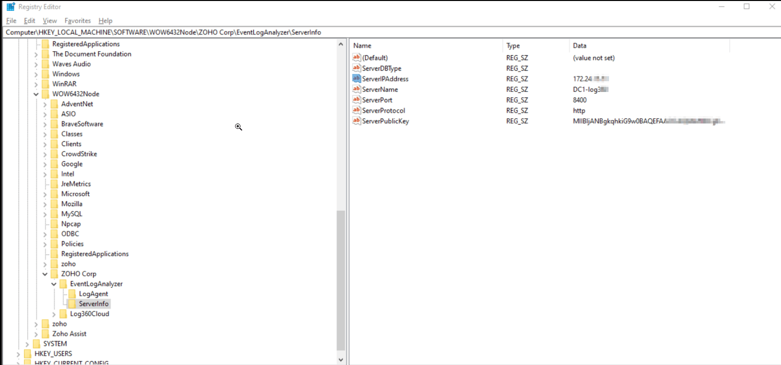Computer\HKEY_LOCAL_MACHINE\SOFTWARE\WOW6432Node\ZOHO Corp\EventlogAnalyzer\ServerInfo