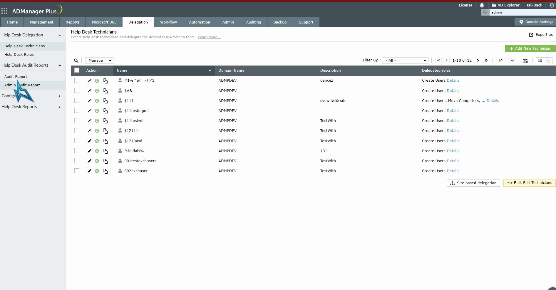 - Log in to ADManager Plus and navigate to the Delegation tab.