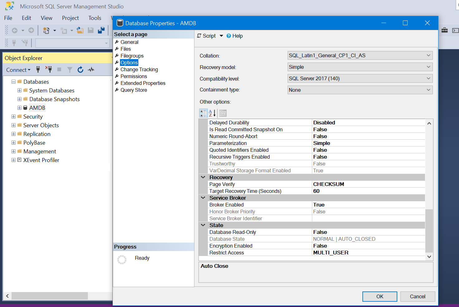 - Under State properties, Database Read-Only option will be present. Set the value to False and click Ok.
