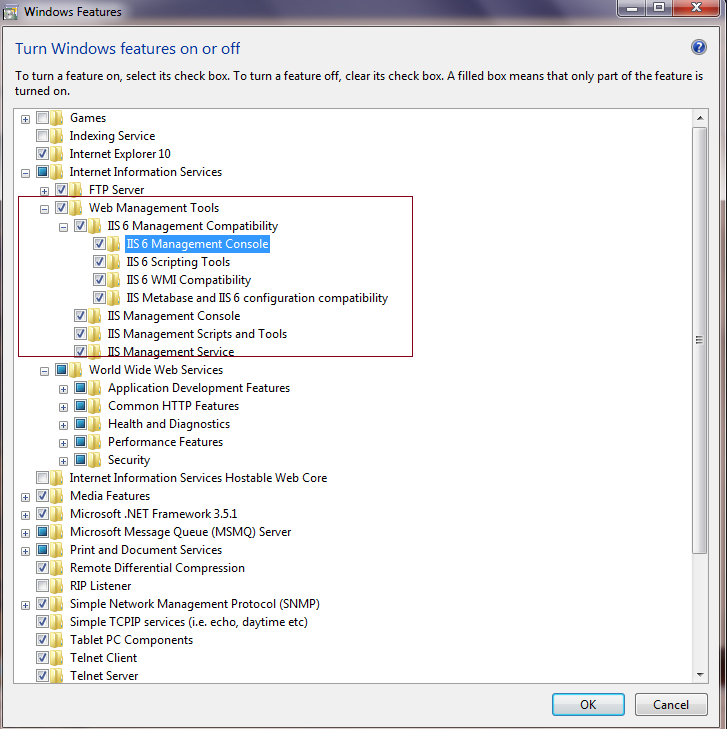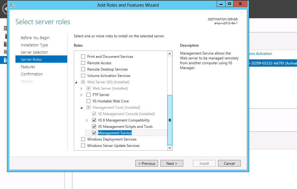 - Management Service (If prompted to add ASP.NET 4.5 -> Click 'Add Features')