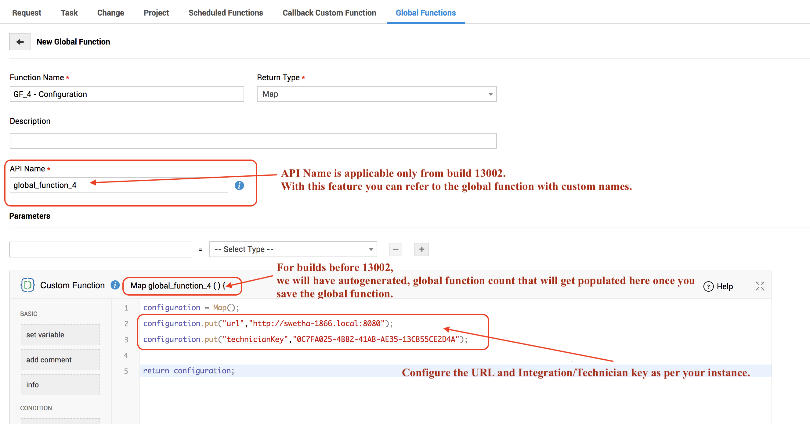 - For the Integration key/Technician key refer to this KB link: https://pitstop.manageengine.com/portal/en/kb/articles/creating-integration-key