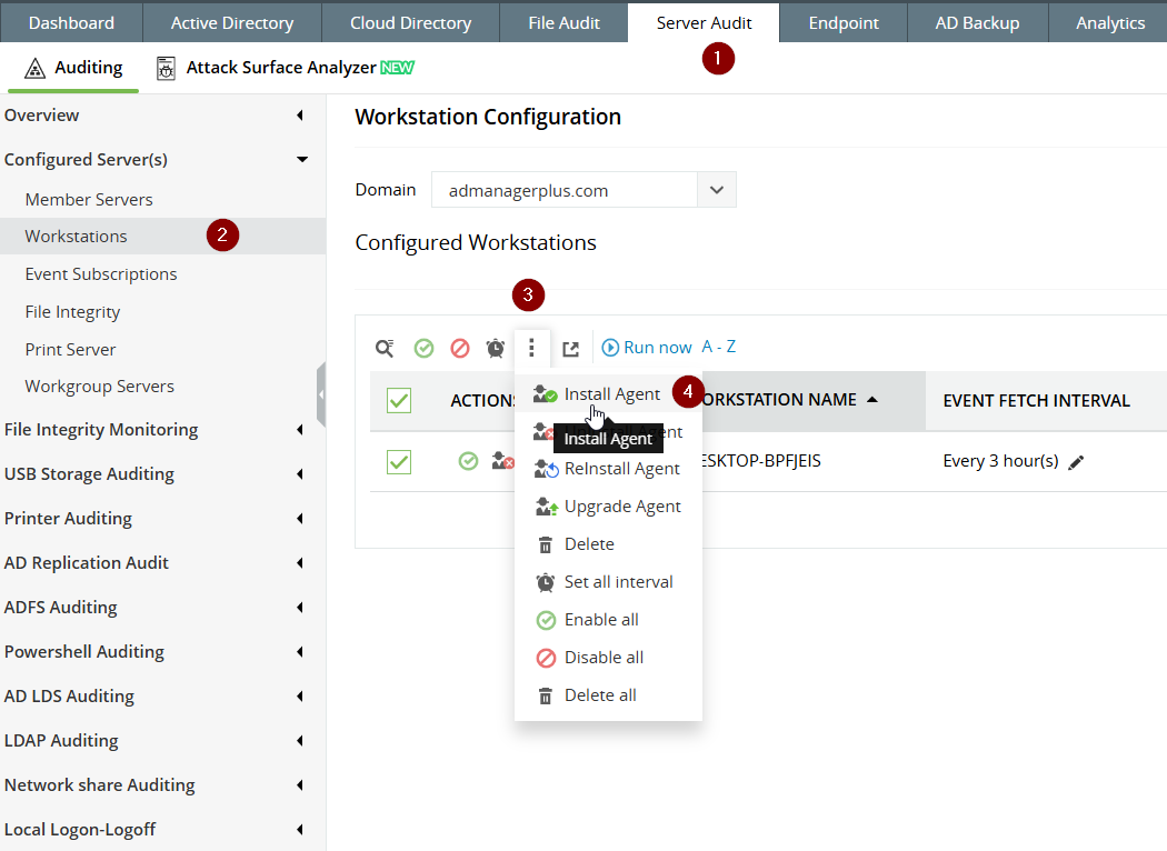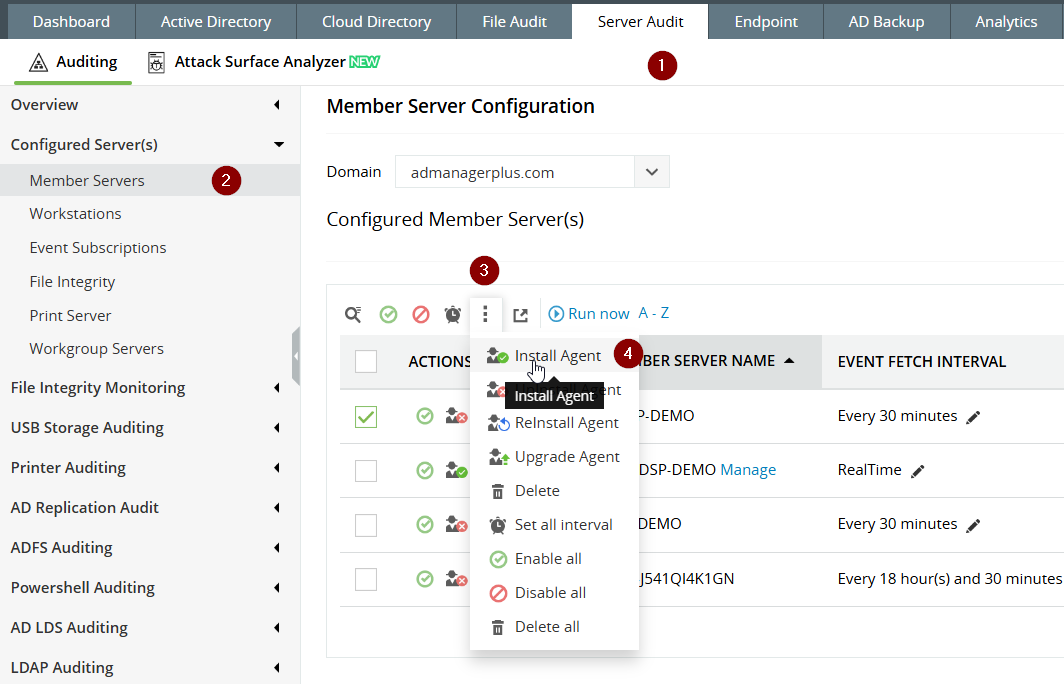 ADAudit Plus requires an agent installed on target machines to collect logs and monitor activity efficiently. This guide can be useful if the manual installation is not an option or if you would like to install agents in bulk across your environment.