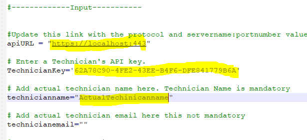 Edit the python script and update the highlighted fields.