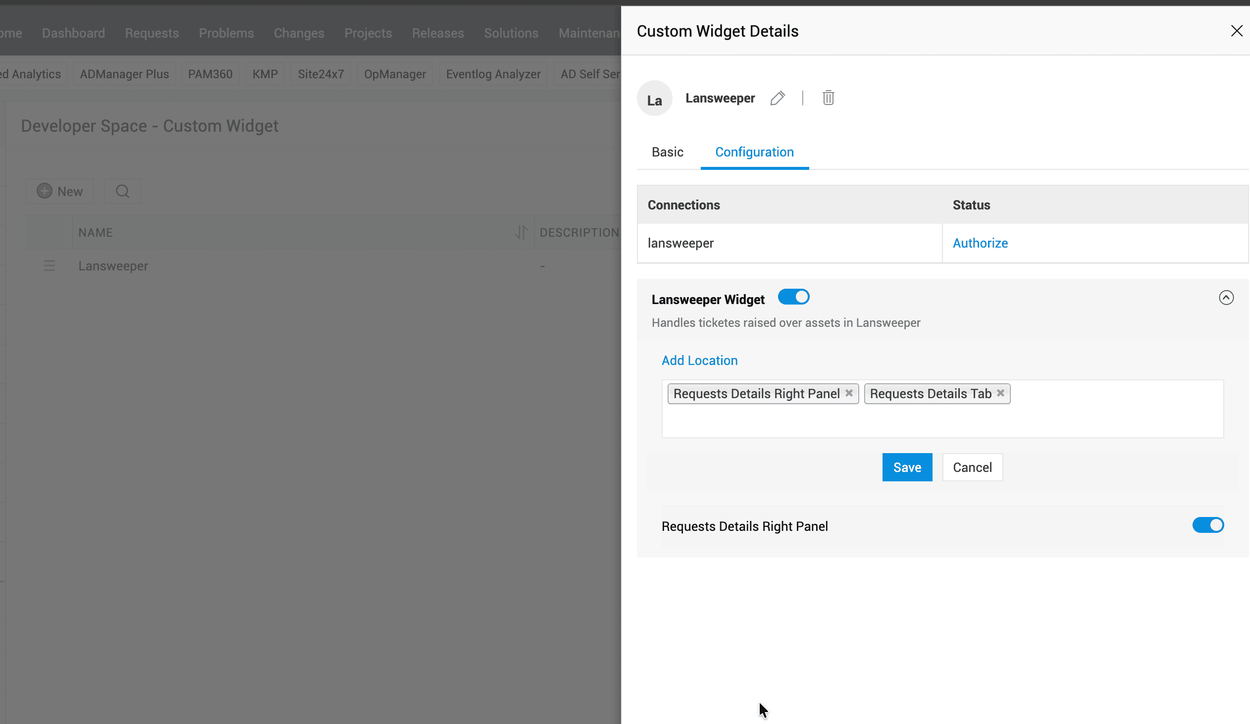 The Lansweeper custom widget integrates Lansweeper asset discovery directly into the request details page of ServiceDesk Plus. This enables technicians to search, view, and associate assets from Lansweeper with a specific request, while maintaining data synchronization between both systems.
