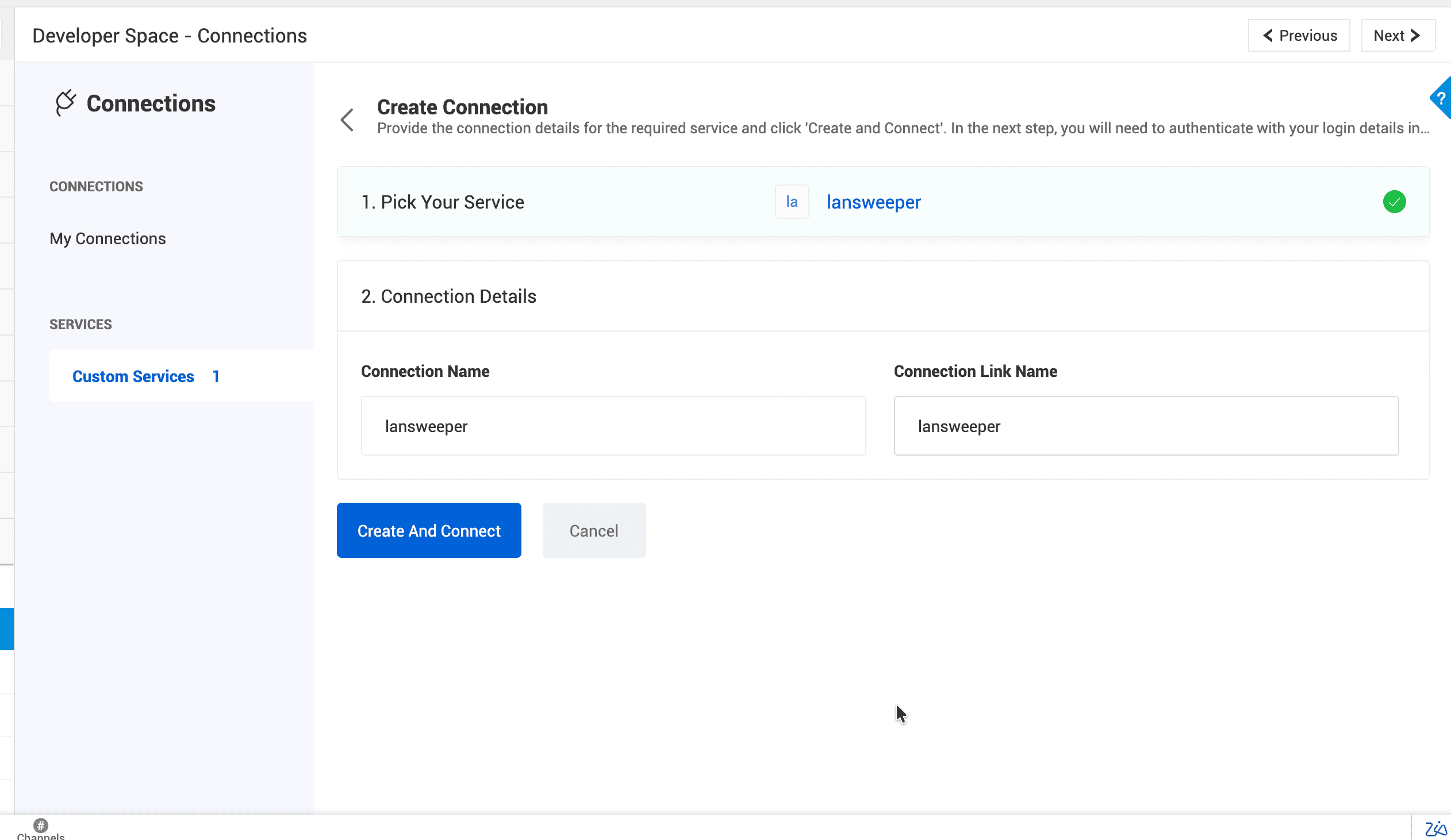 Follow the steps below to create a service and connection in ServiceDesk Plus.