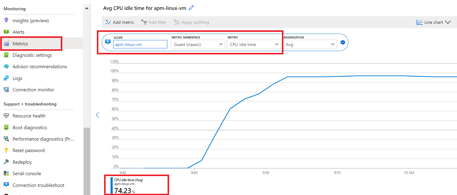 - In the Azure portal, go to Virtual Machine and click 'Metrics' under 'Monitoring' in the left pane.