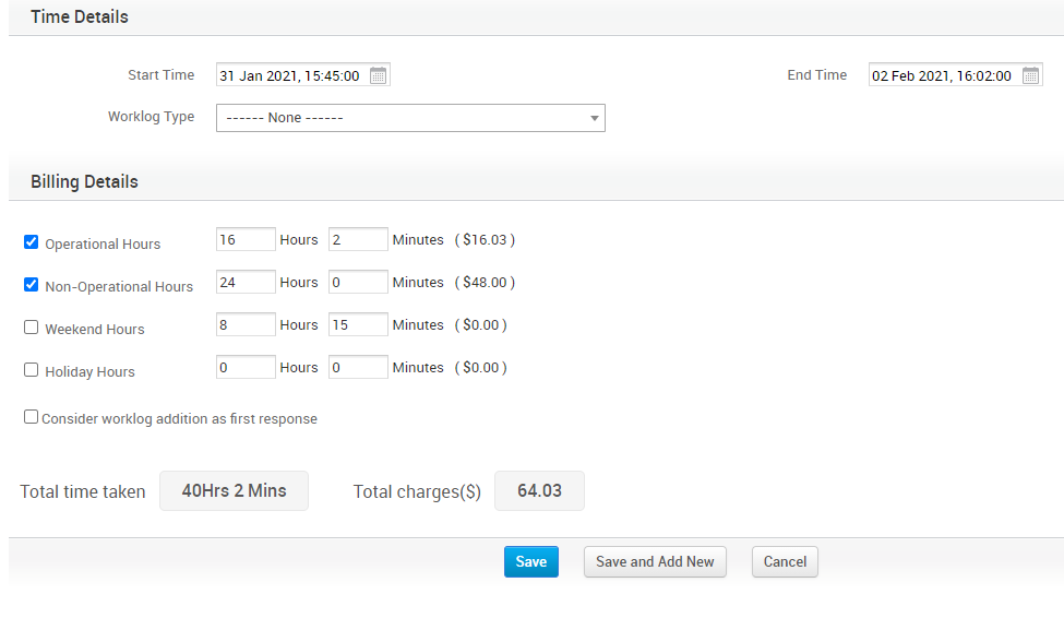 If the option is set to “Yes”, then the non-operational hours check will be automatically enabled while adding a worklog.