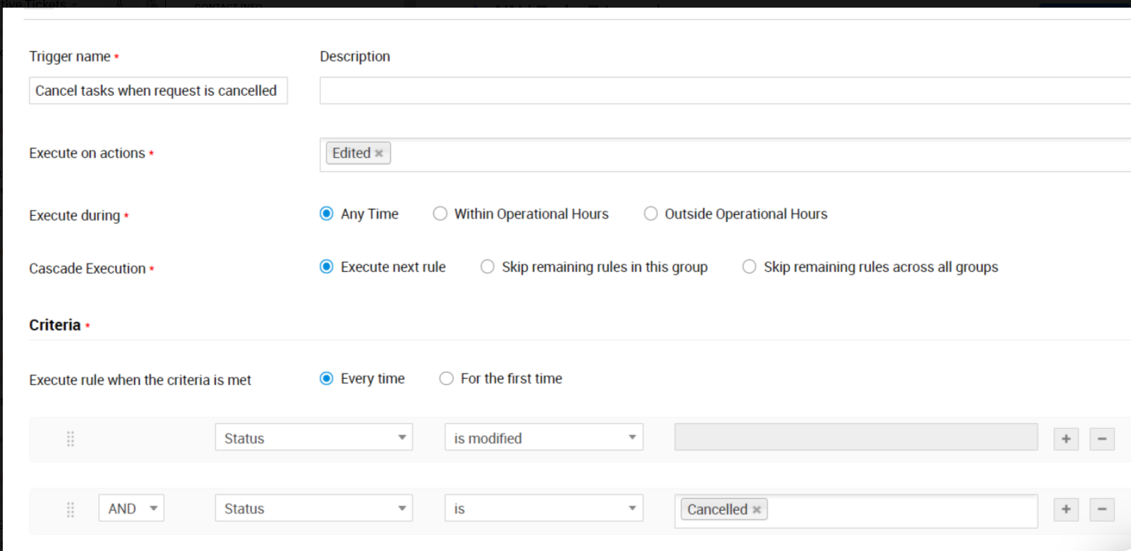 Option to cancel the pending tasks when Request is cancelled- when the worklog is mandatory