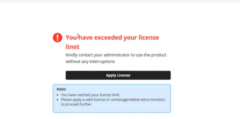 - License exceed error displayed in APM Plugin