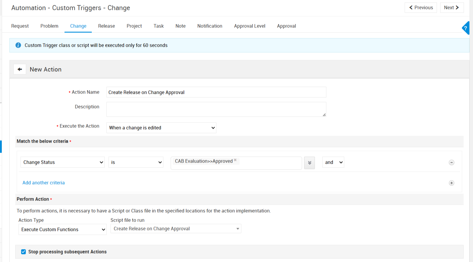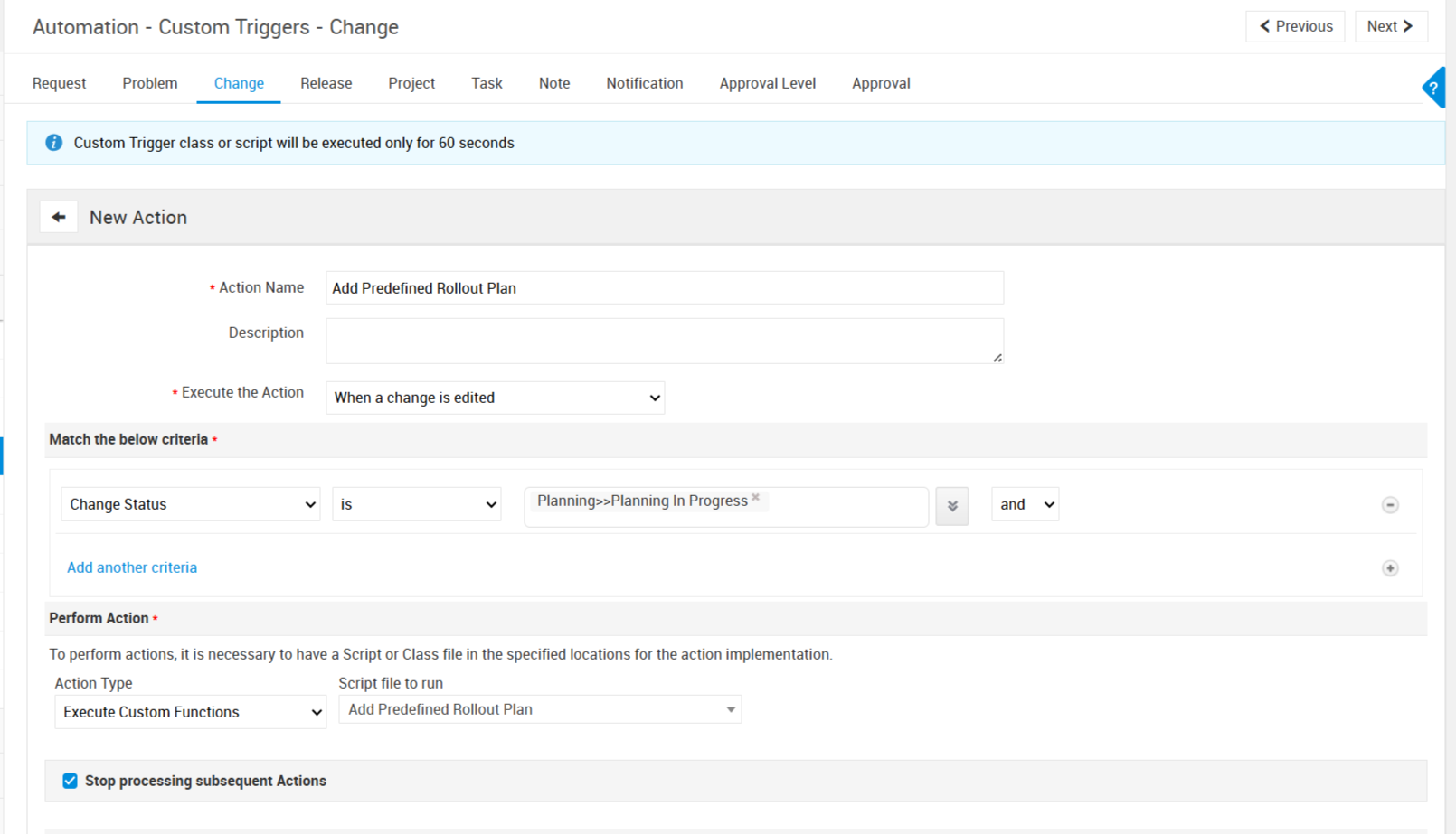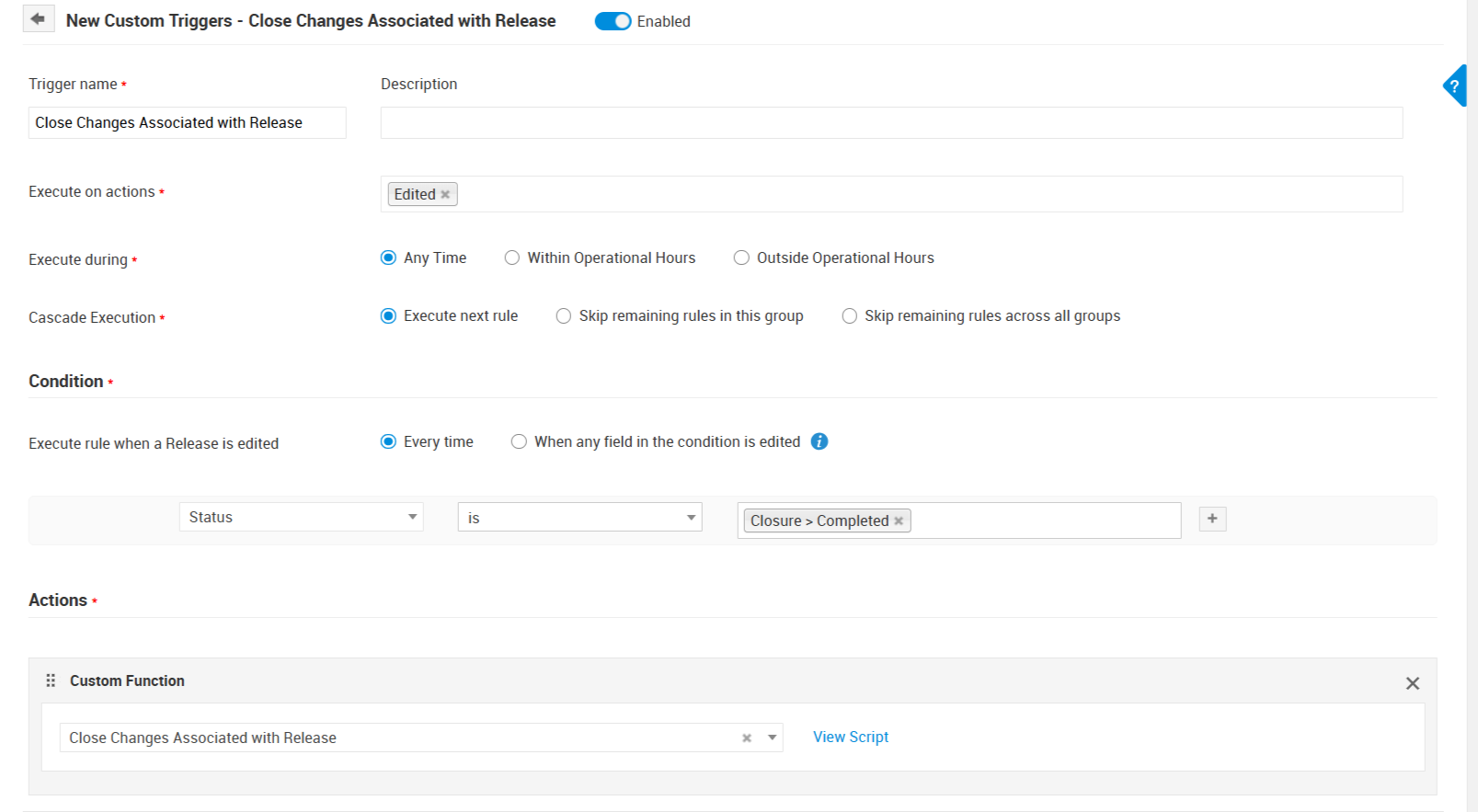 Under Actions, select Execute Custom Function → Set Service SLA Based on Priority.