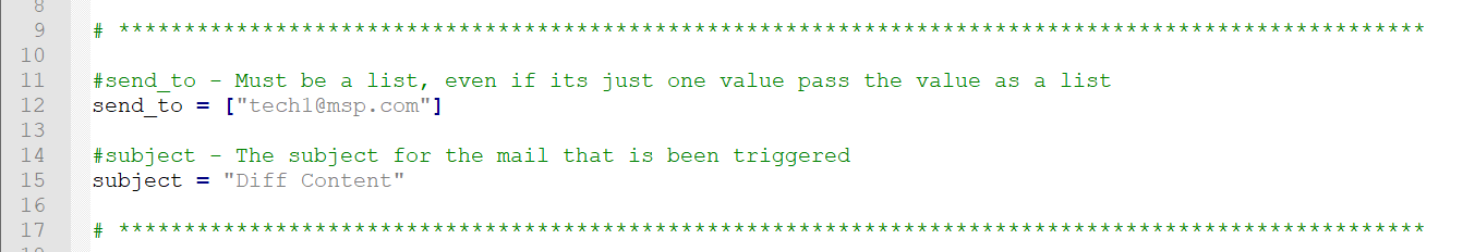 3. Edit the file "sendmail_withdiffcontent_v1.py" and configure the Subject & Email Address that you would like to notify: