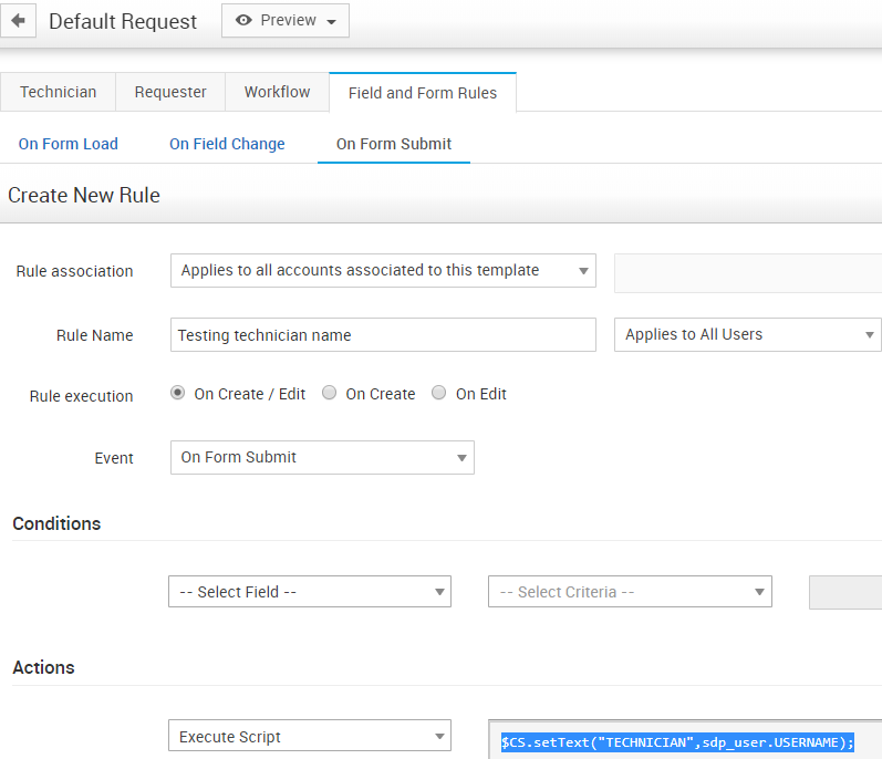 When a technician responds to an unassigned request, the corresponding ticket will be automatically assigned to the specific technician. Tested in: Build 14306 (Postgres) Steps: Download the attached scripts. Under Admin > Developer Space > Global ...