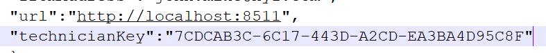 The URL of the application and TechnicianKey should be updated. If you have not done it already, click on the user bade on the top right corner and click on API Key generation.