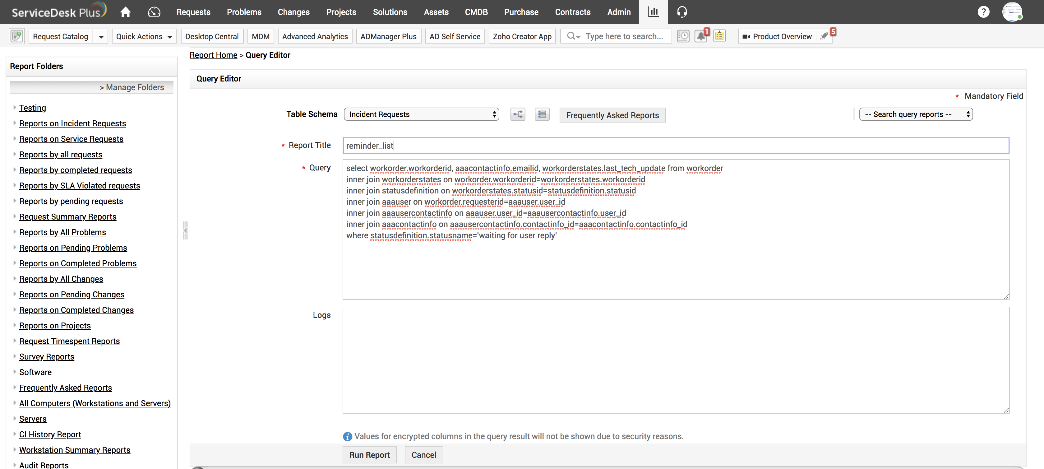 select workorder.helpdeskid "portalid", workorder.workorderid "workorderid", workorder.title "subject", aaacontactinfo.emailid "emailid", workorderstates.last_tech_update "last_tech_update" from workorder
