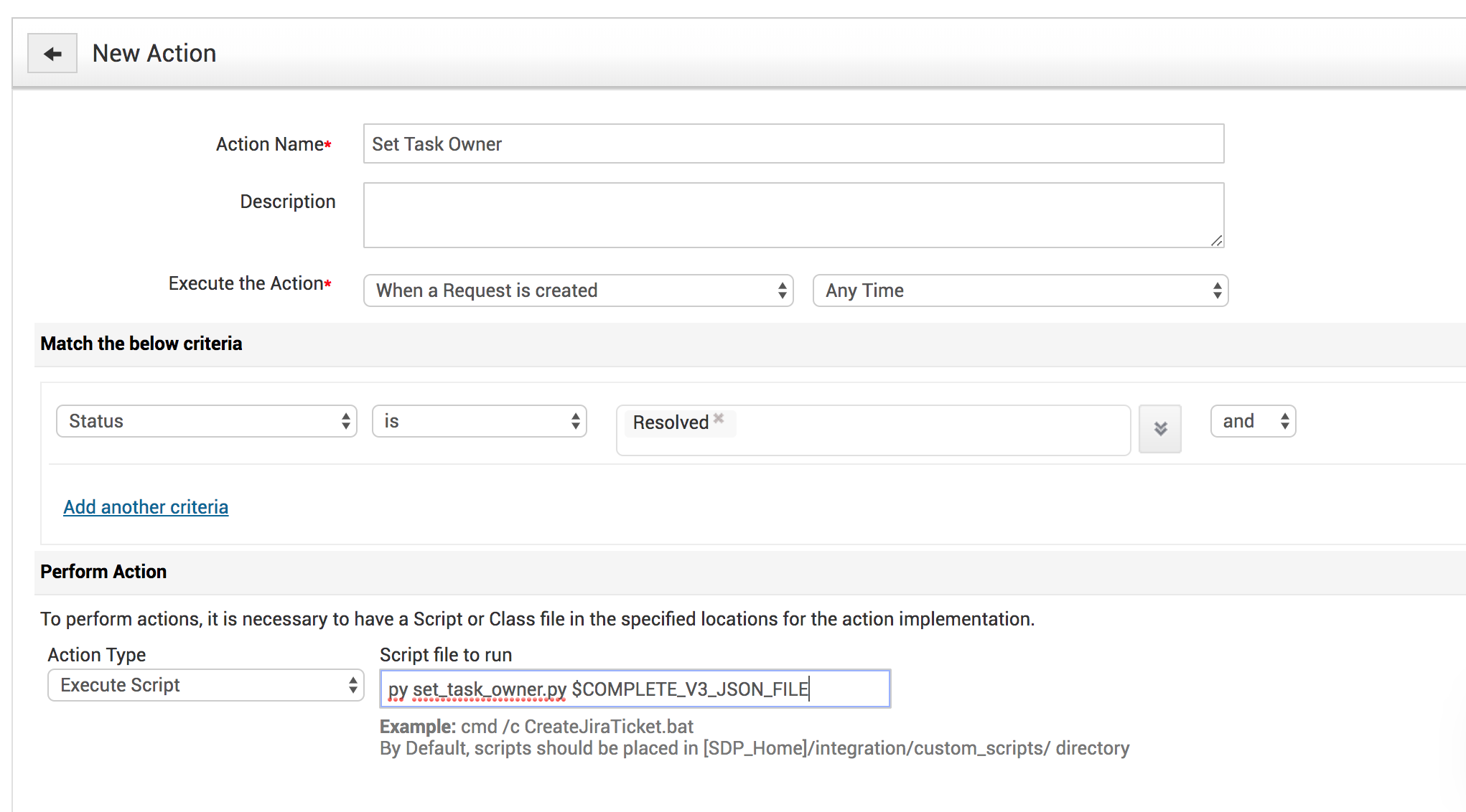 4. For Custom Triggers: Go to Admin > Custom Trigger > give a trigger name > execute script > py set_task_owner.py $COMPLETE_V3_JSON_FILE and set the criteria as "status=Resolved"