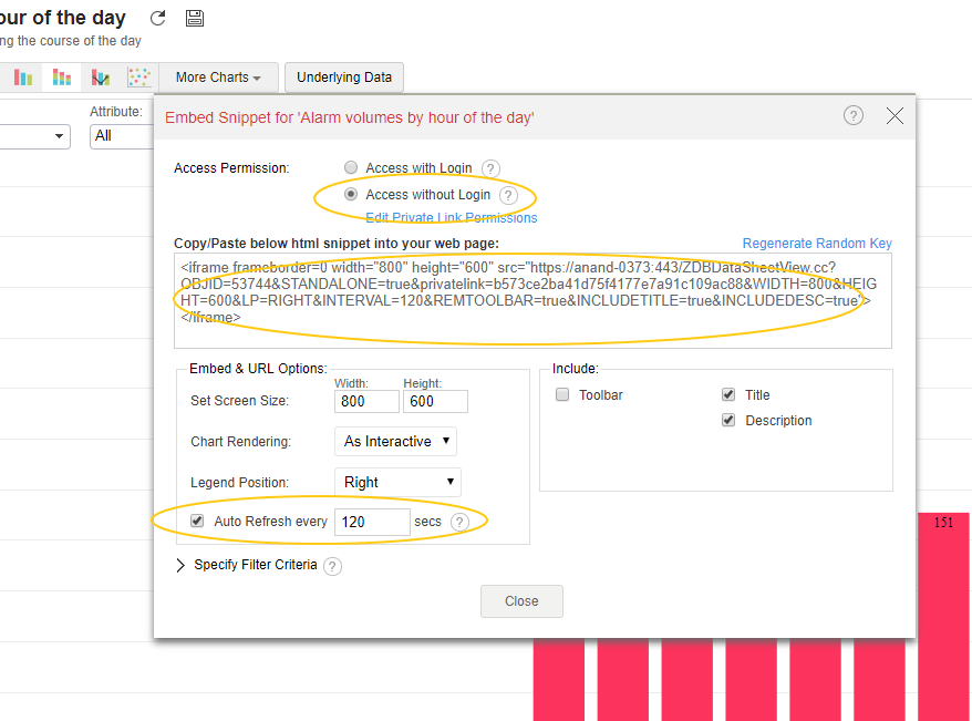 Step 2: Make sure to select 'Access Without Login' and refresh every 120 Seconds and Copy the iframe generated: