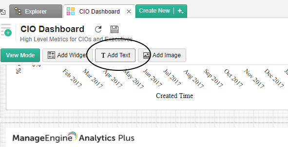 Step 3: Create/Edit the Dashboard under ITSM database: (Under the Servicedesk Plus database, edit the specific Dashboard where the report is to be embedded and click on 'Add Text')