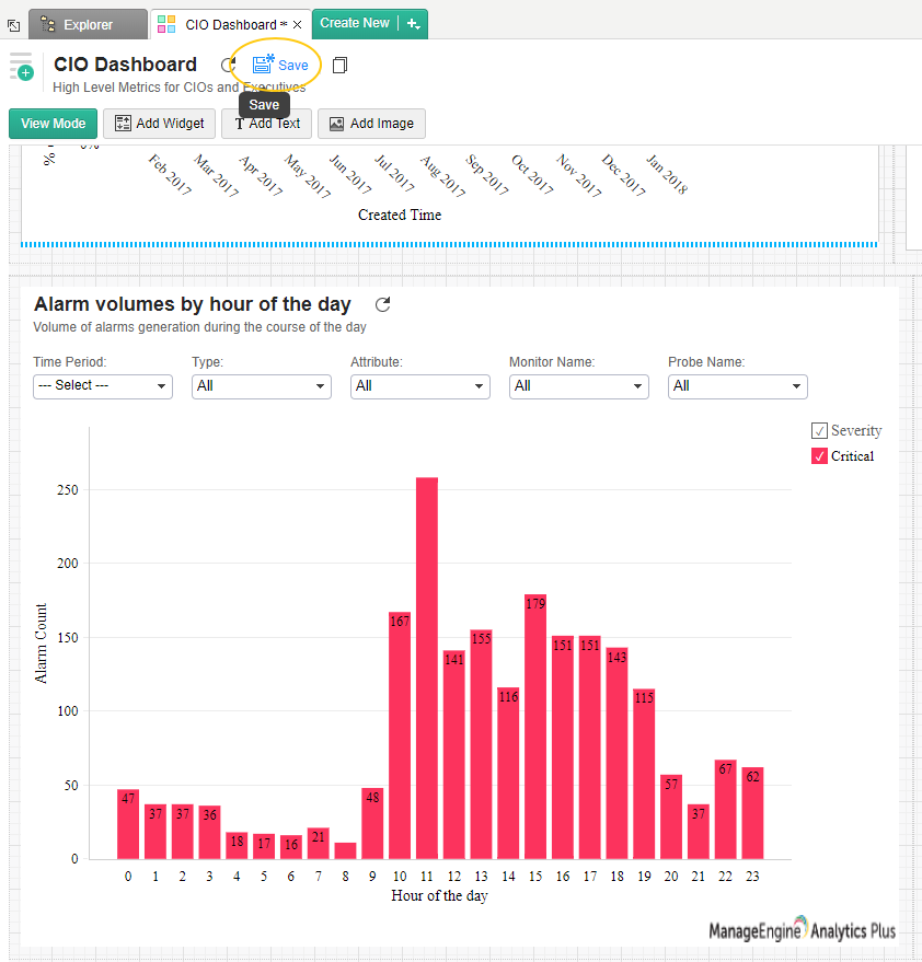 Step 6: Once the report is loaded in the dashboard, save the dashboard.